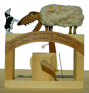 "Though always keen and eager the sheepdog never really mastered the herding of carnivorous sheep."